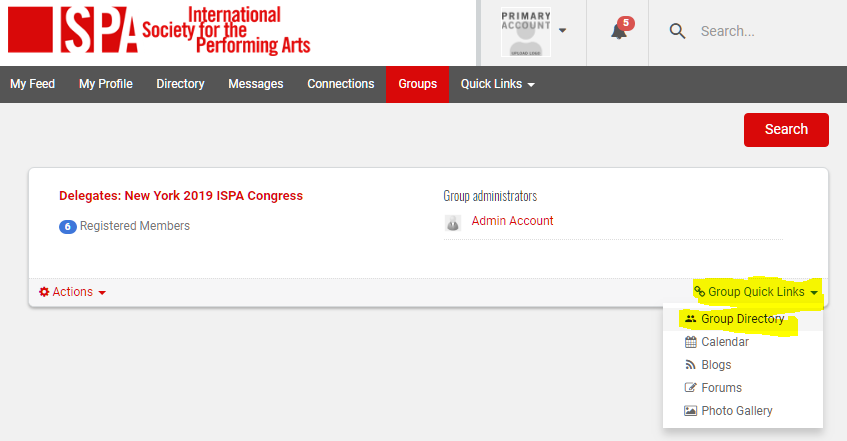 - Either use the “Group Quick Links” and select “Group Directory”,