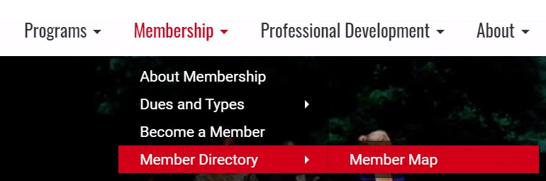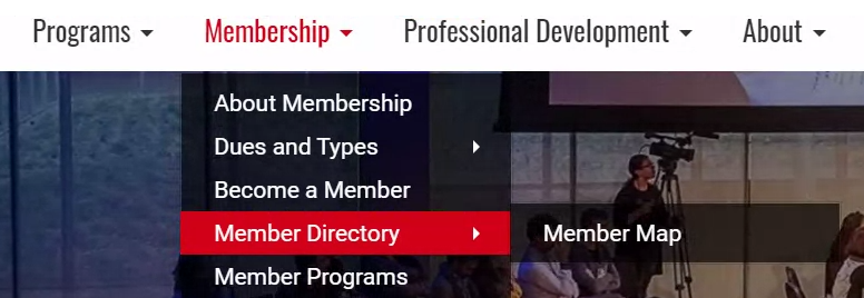 - Either select “Member Directory” from the Membership dropdown from the navigation menu bar,