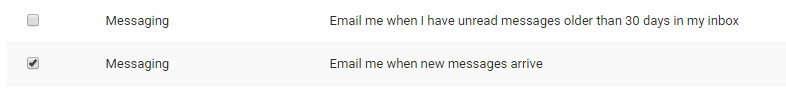 - Under the category “Messaging”, select or toggle “on” the “Email me when new messages arrive” description.