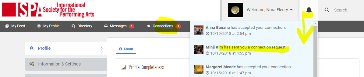 - Alternatively, any time you have a connection request pending, it will appear in your notifications and next to the connections menu item: