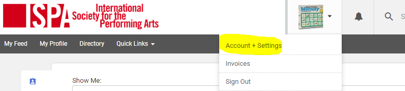 - From the drop down menu on the Welcome, select “Account + Settings”